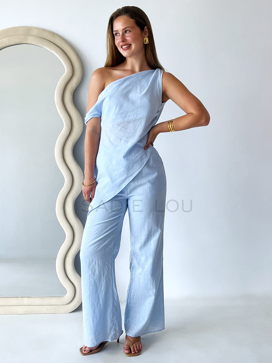 Style: Off-the-Shoulder, Asymmetrical Top and Pant Set