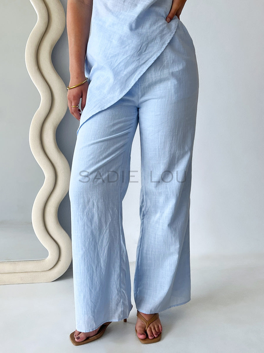 Effortlessly chic and ultra-comfortable, this Baby Blue Pant Set is the definition of relaxed luxury. Perfect for lounging or making a sophisticated statement while out and about.