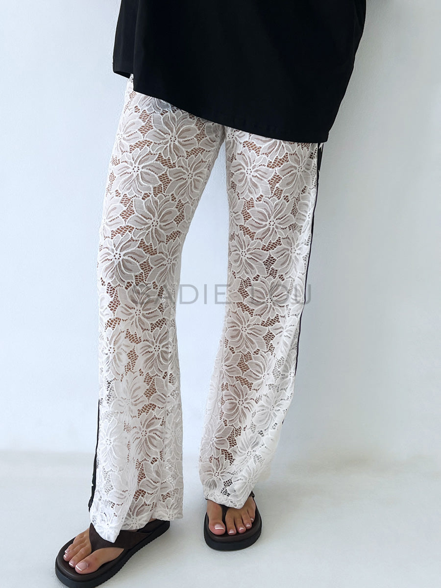 Elevate your off-duty style with these statement White lace pants. Crafted from 100% polyester, they feature a no-lining finish for a lightweight, breathable feel and a comfortable elastic waistband for all-day wear.