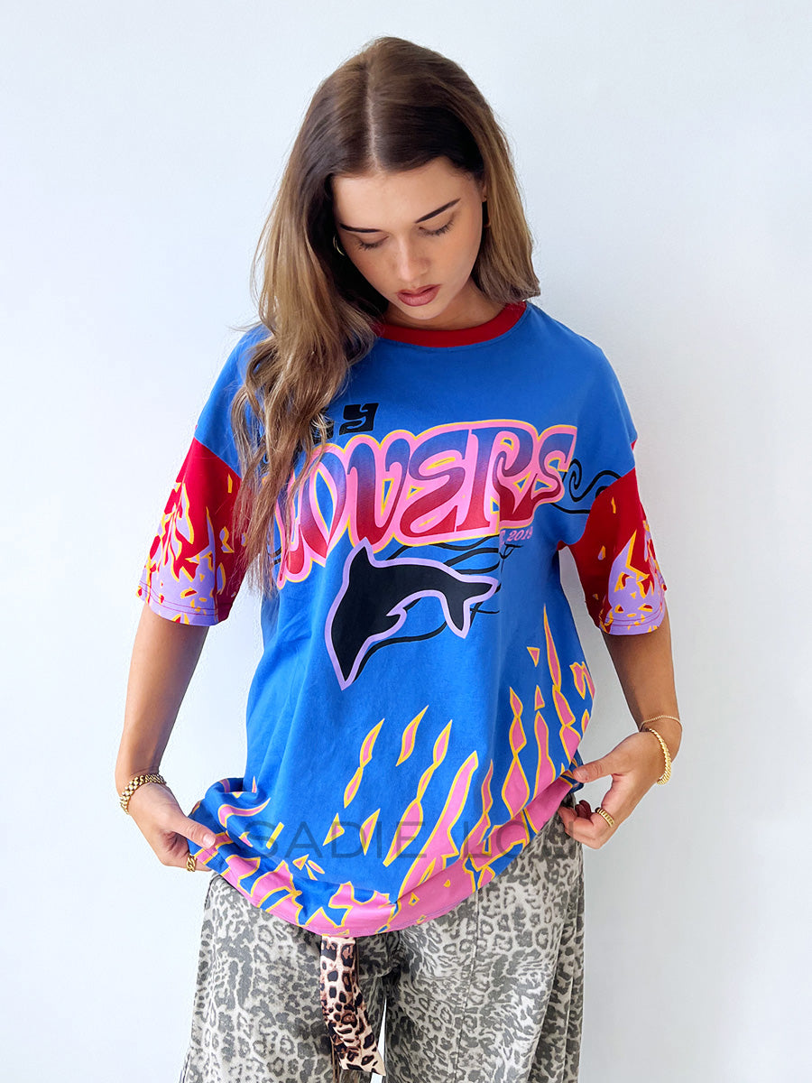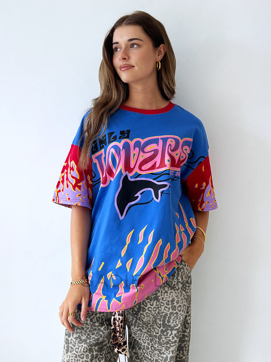 Born from salt water and sun glare, the Wave Racer Tee is cut in our signature oversized fit and made from soft 100% cotton, bringing sun-bleached colour hits and 90s nostalgia into an easy, throw-on piece with main character energy.