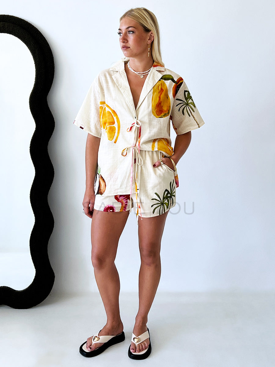 This effortless set features a tie-front top and matching shorts, crafted from soft, breathable cotton fabric for ultimate comfort. The top is designed with a flattering tie in the middle, allowing you to adjust the fit and add a playful, feminine touch.