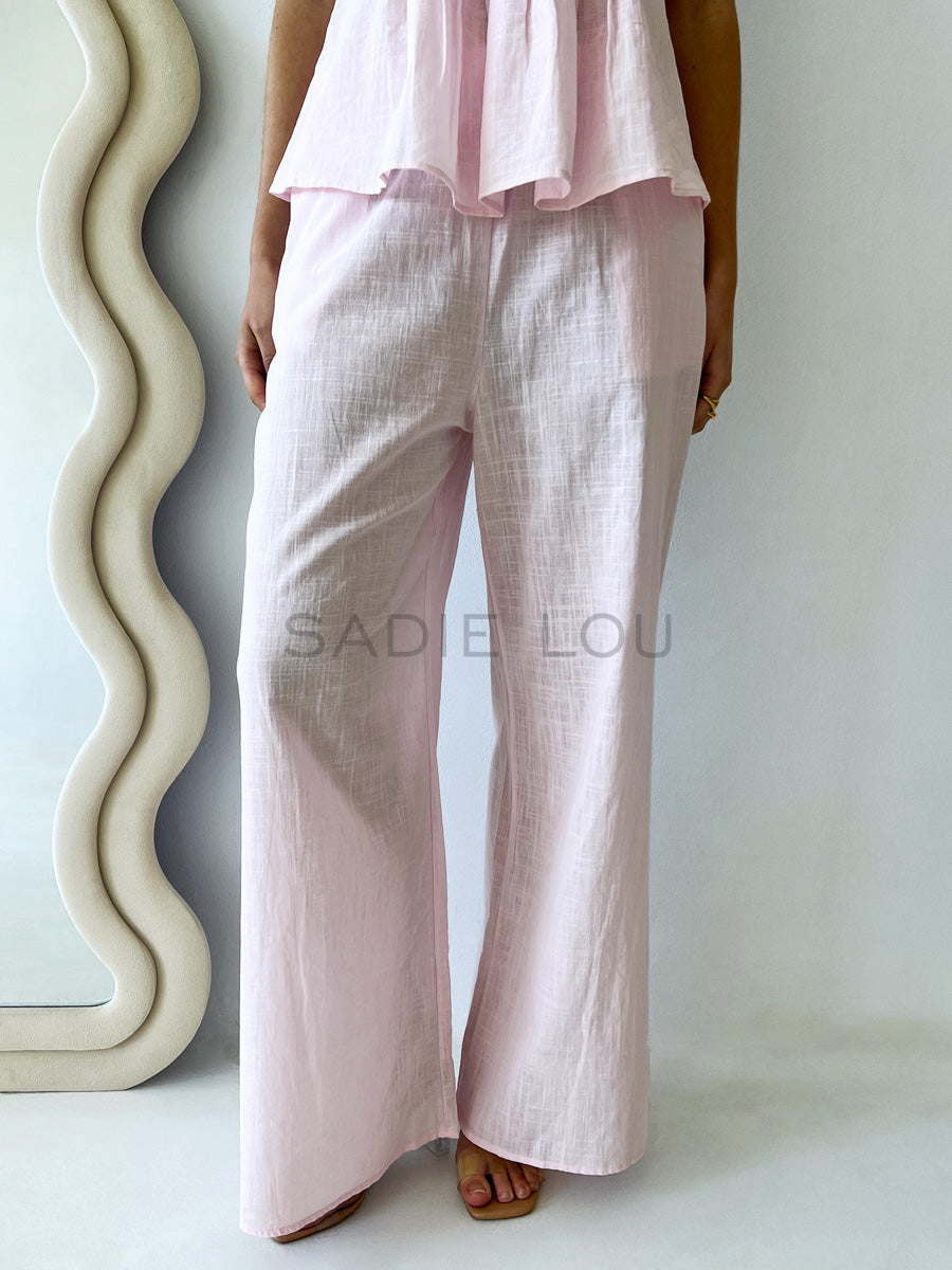 The perfect summer set to go from day to night. This light pink set is perfect for day with a pair of slides and then transition to night with a cute pair of heels.