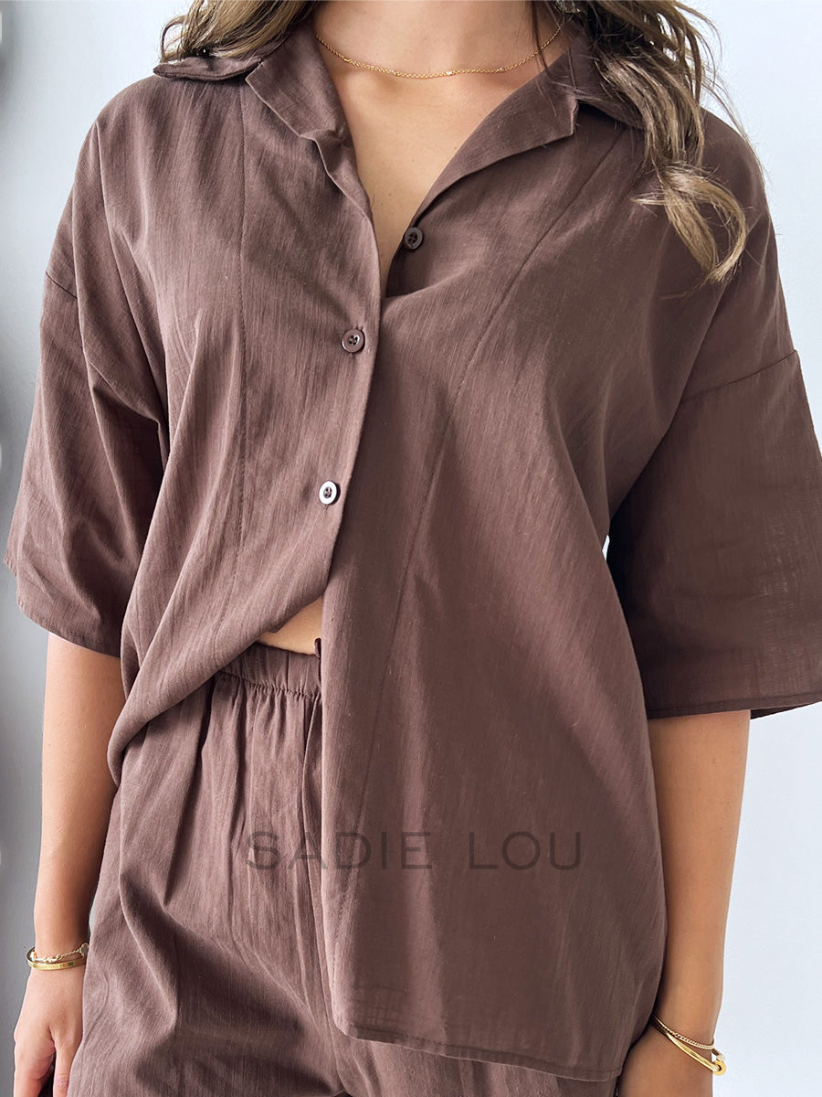 This two-piece set features an easy, relaxed silhouette designed for comfort and effortless wear. The shorts are finished with a comfortable elastic waistband for a flexible fit and include two side pockets for everyday functionality. Lightweight and easy to move in, they’re ideal for warm-weather styling.