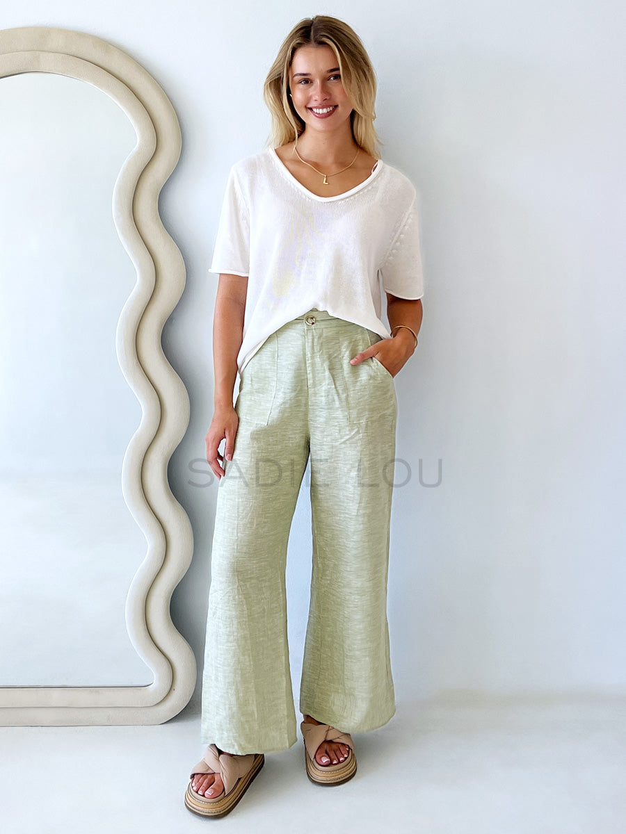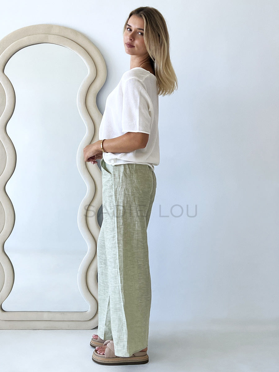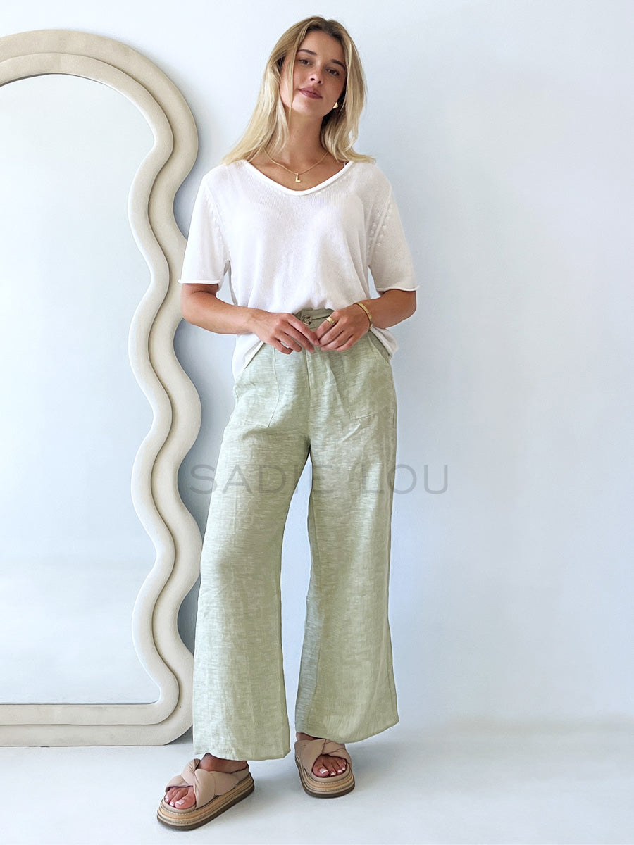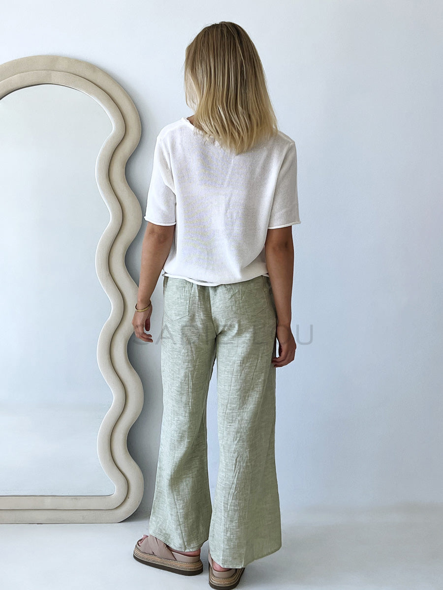 Tee has a soft, breathable texture (from the linen and tencel) but with the durability and lightness of a knit (from the acrylic). The model's size and height give an indication of how the SML/Med size fits a person of average height