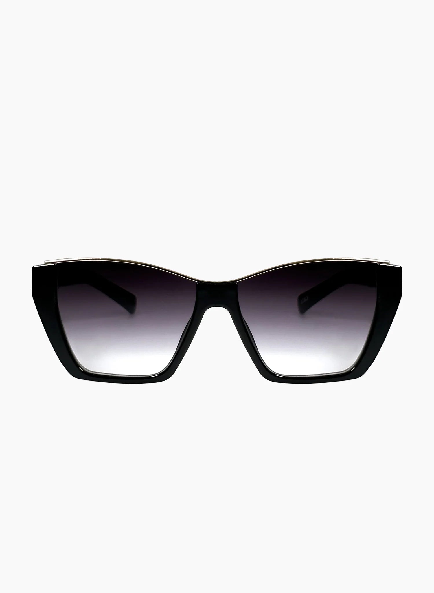 These classic sunglasses embody timeless sophistication, effortlessly bridging past and present. The polished black frame paired with gradient smoke lenses.