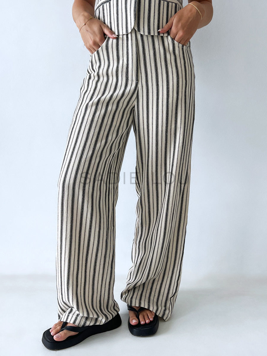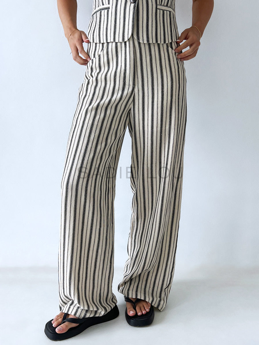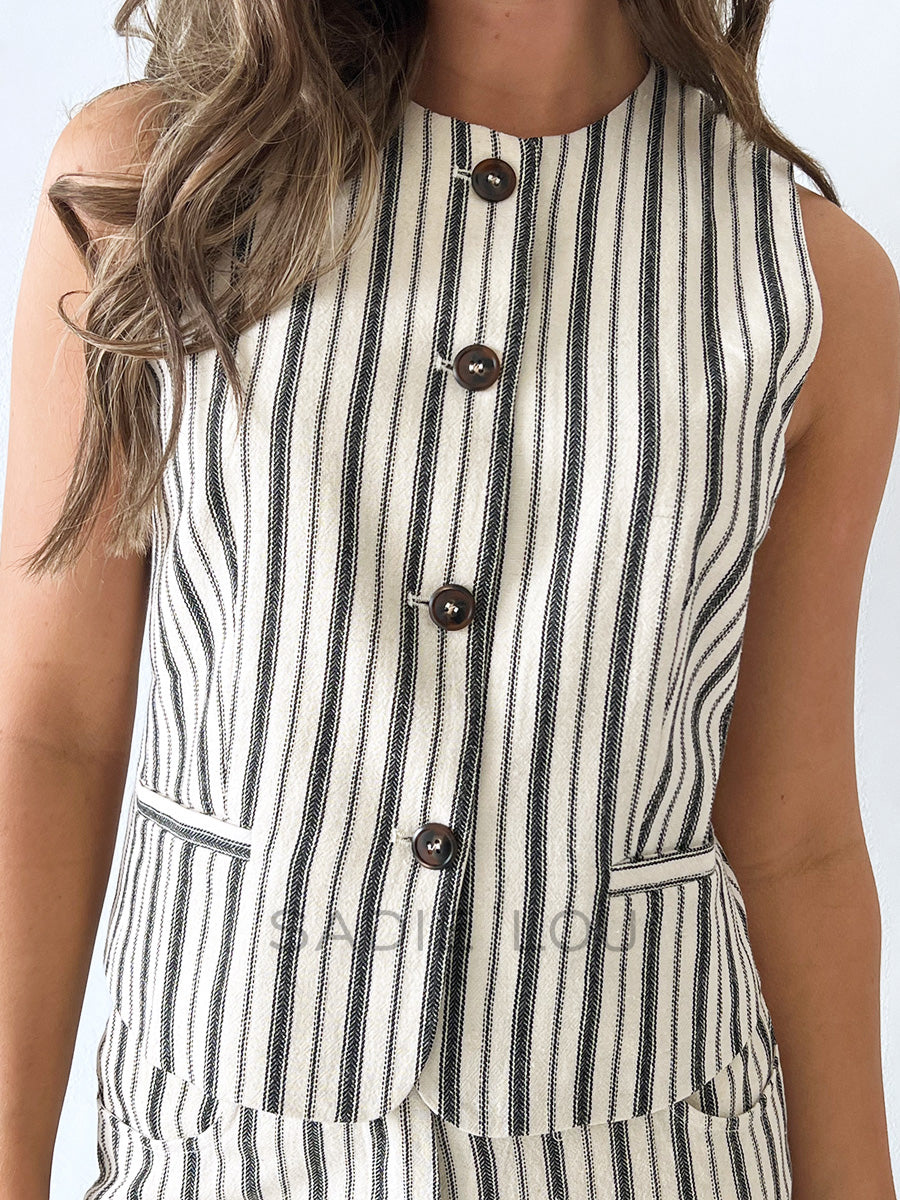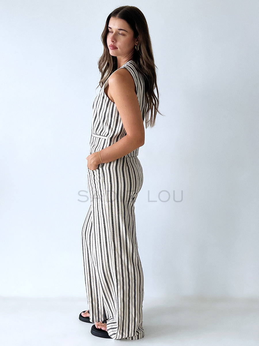 This matching top features the same crisp white base with black stripes, creating a bold yet timeless look. Designed to pair perfectly with the coordinating pants, it showcases the same stripe pattern for an effortlessly put-together set.