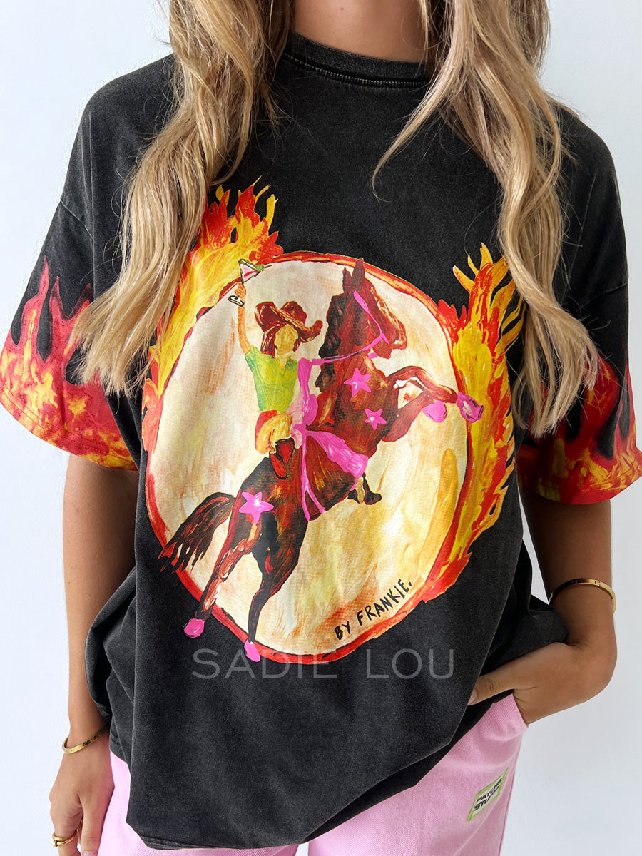By Frankie / Flamin Cowgirl Tee - Black