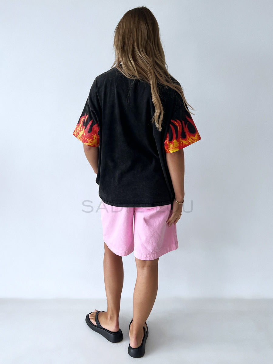Get ready to saddle up your style with the Flaming Cowgirl Tee, now in a fierce Black Acid Wash! This is the statement piece that brings the grit of the wild west and blends it perfectly with a dose of edgy, rock 'n' roll attitude. It's for the cowgirl who's not afraid to turn heads and own the spotlight, embracing a dark, rebellious aesthetic.