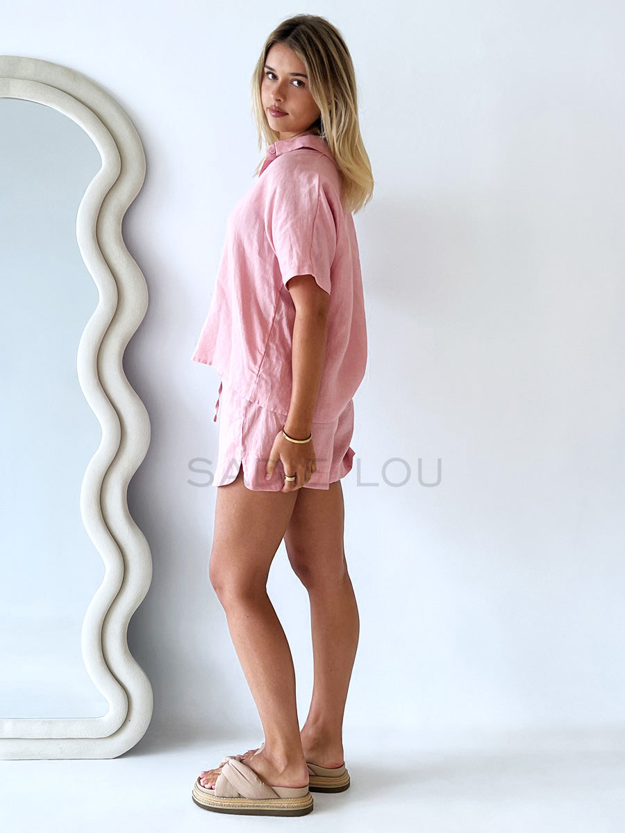 Complete your ultimate summer set with The Essential Linen Button-Up Blouse, the perfect partner to our popular linen shorts. Crafted from the same beautiful, breathable 100% linen, this shirt is designed to be a versatile staple you'll reach for all season long.