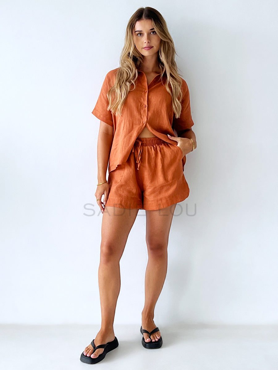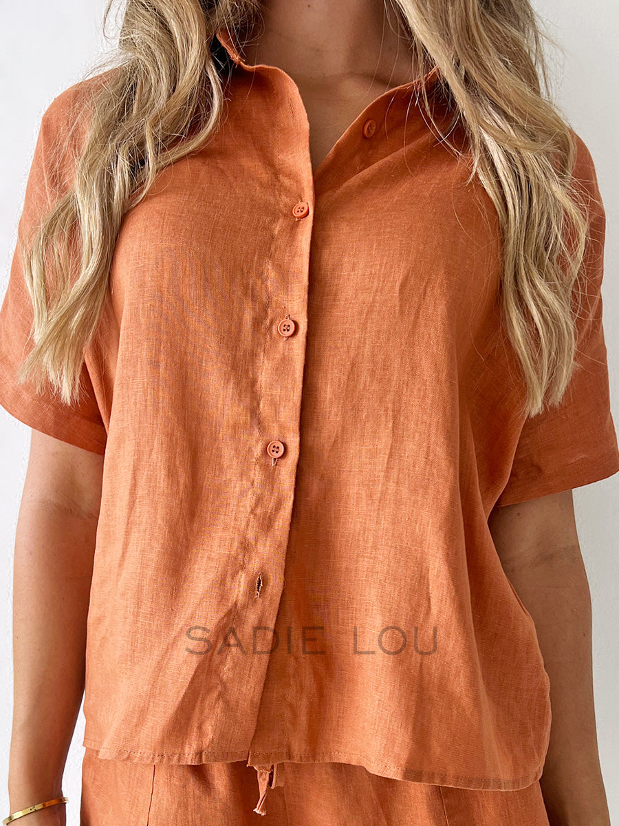 Complete your ultimate summer set with The Essential Linen Button-Up Blouse, the perfect partner to our popular linen shorts. Crafted from the same beautiful, breathable 100% linen, this shirt is designed to be a versatile staple you'll reach for all season long.