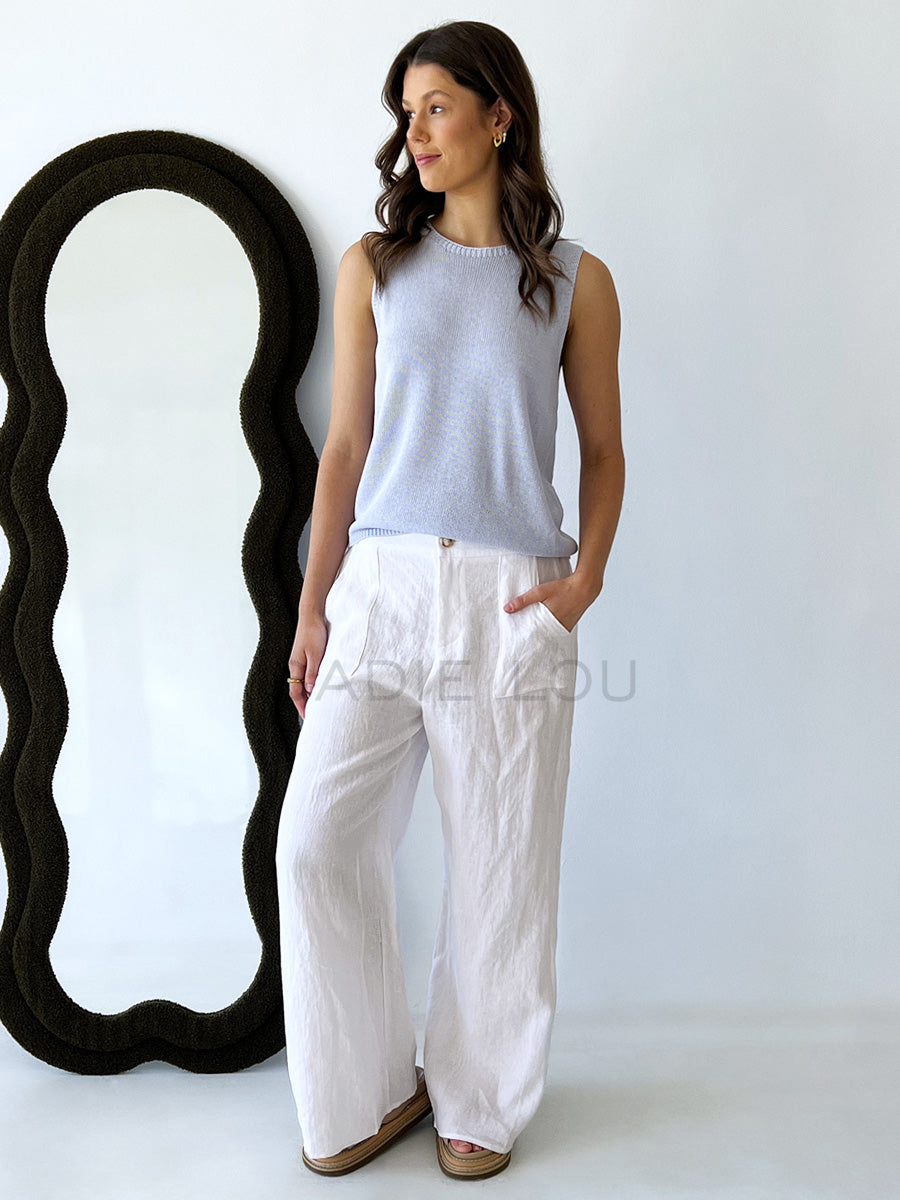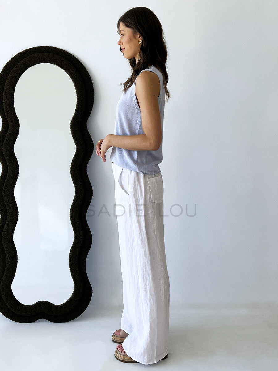 Little Lies / Linen Boyfriend Shirt - Powder Blue