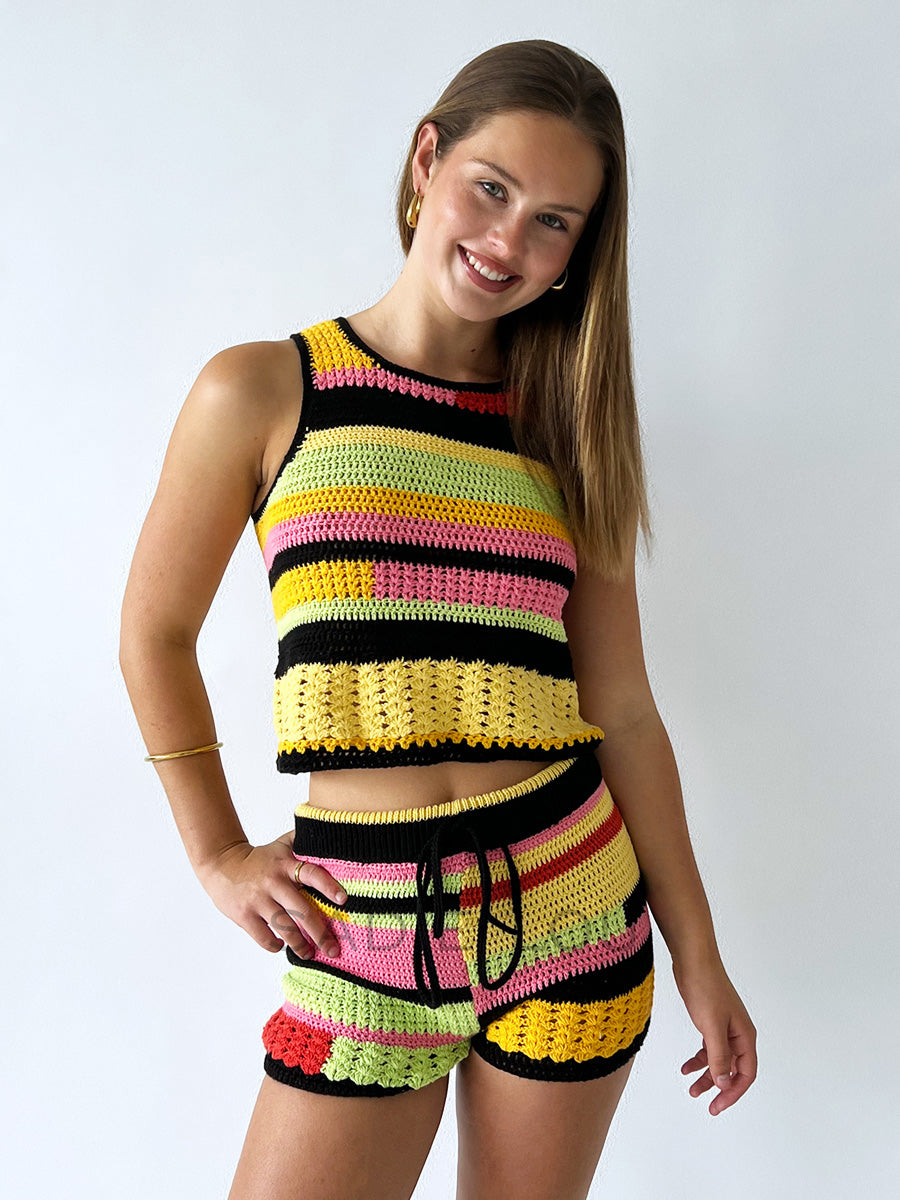 The Tropical Tee features a vibrant yellow summer gradient and a unique front print inspired by sun-soaked Sicilian days. Designed with a bold black ribbed neck and matching cuffs, it’s handcrafted by skilled artisans using soft Peruvian cotton. This relaxed-fit tee blends artistic detail with effortless everyday comfort.
