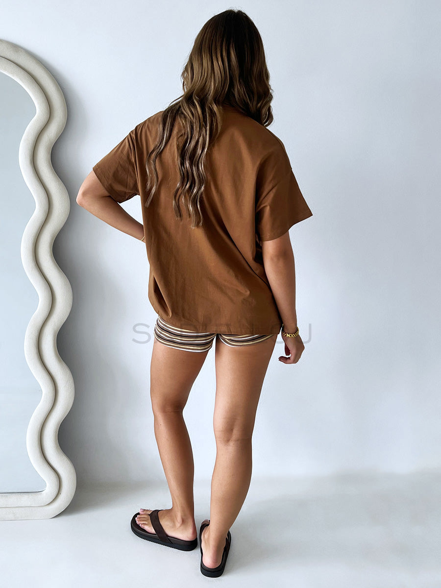 Chocolate brown T-shirt Red Print