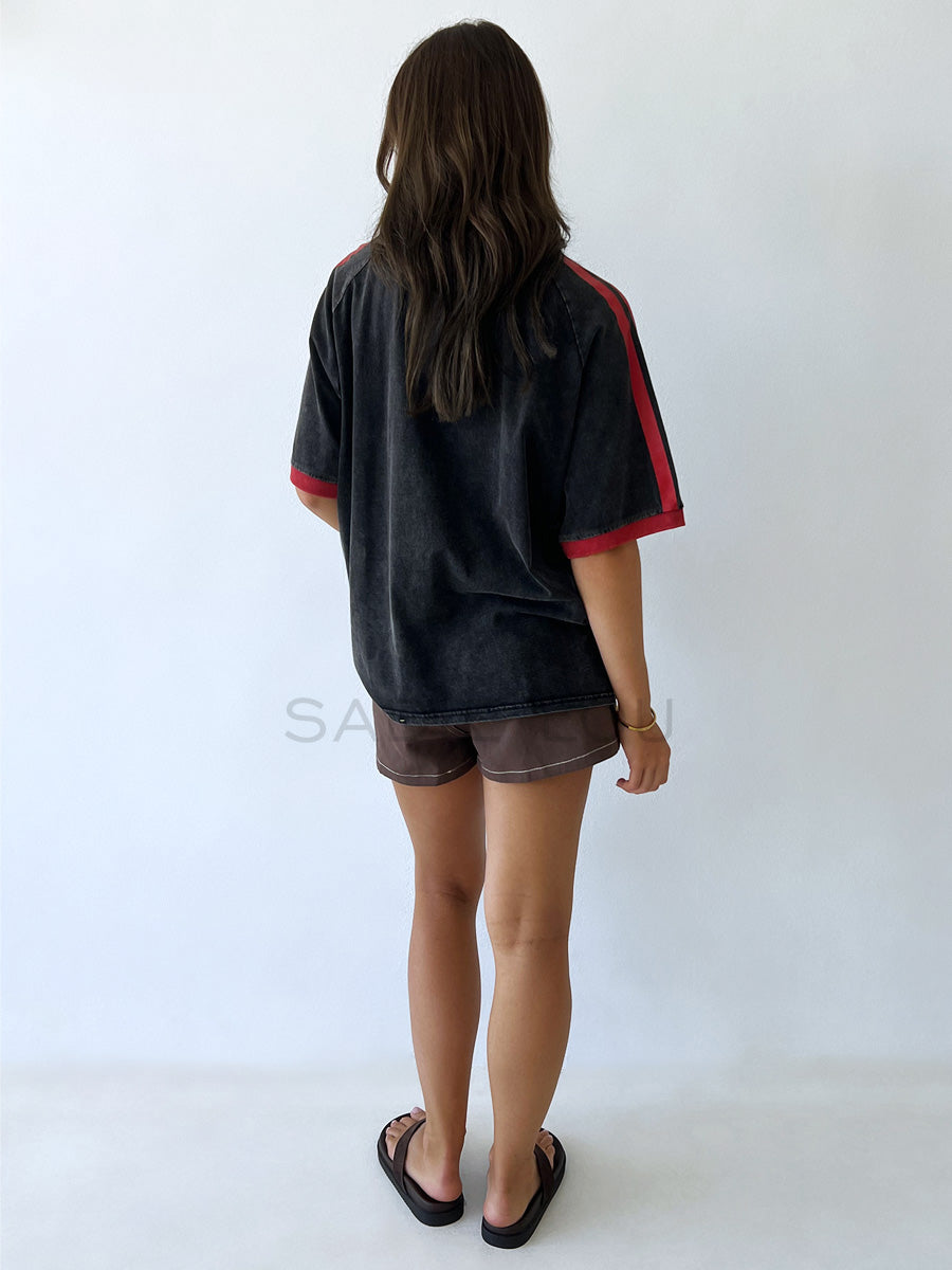 Made from 100% soft, breathable cotton, it’s finished with a round crew neckline and contrasting ribbed trim for that classic ringer-style edge. Think throwback feel with modern comfort — perfect for tossing on with denim or layering under your favourite jacket.