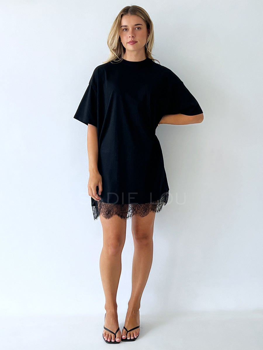 By Frankie / Sofia Lace Tee Mini Dress - Black