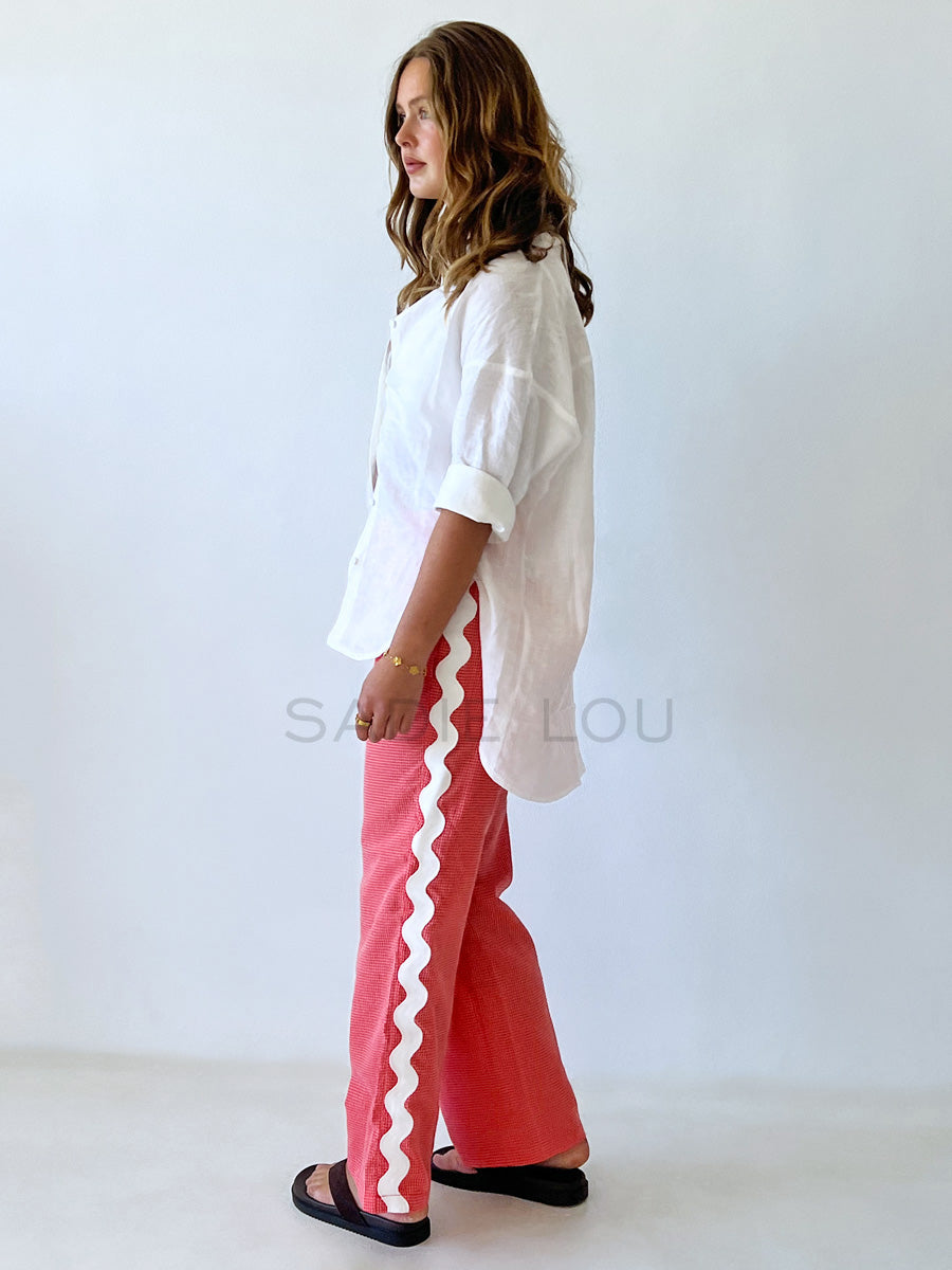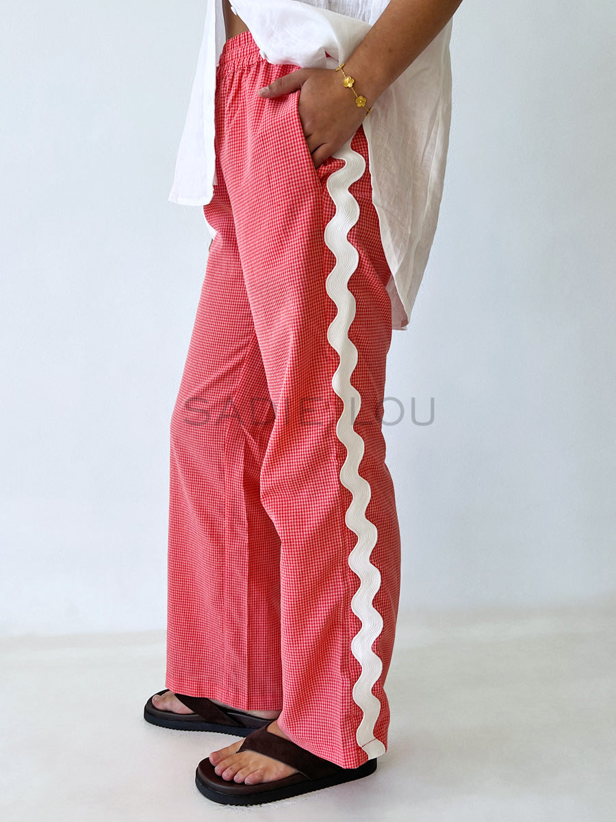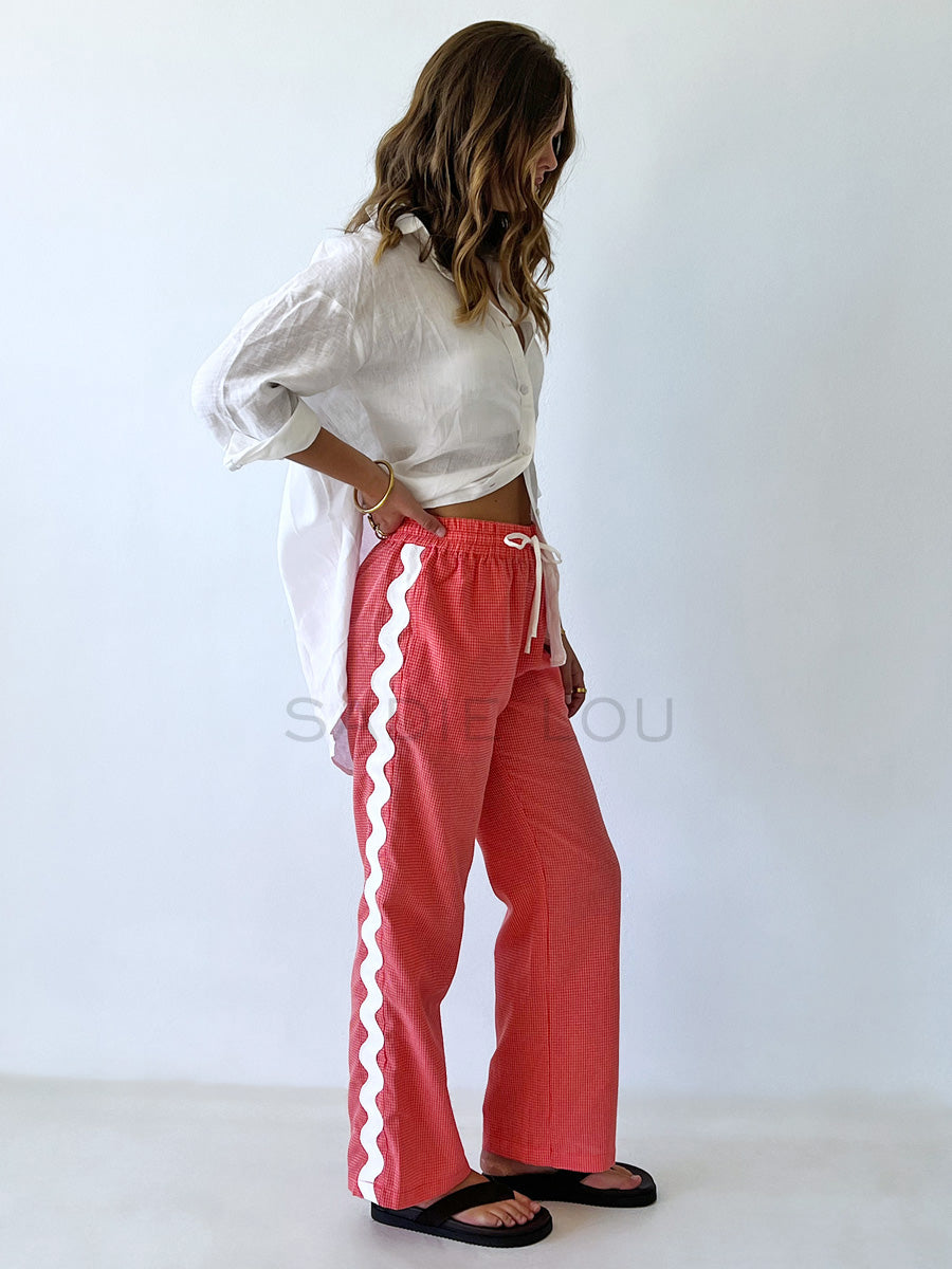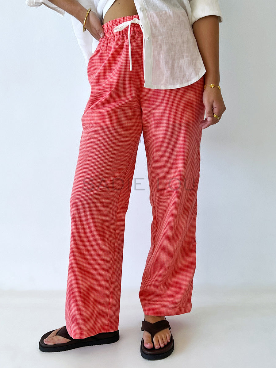 Cartel & Willow / Blair Beach Pant - Coral Gingham