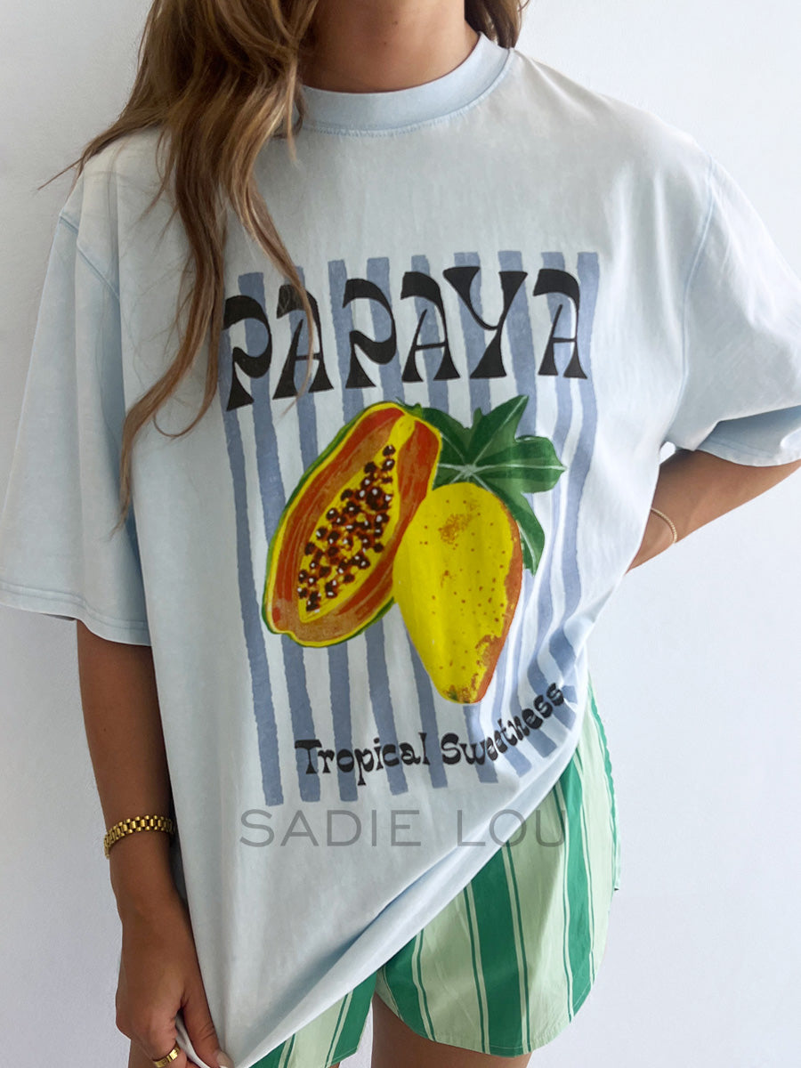 Large papaya graphic on the front