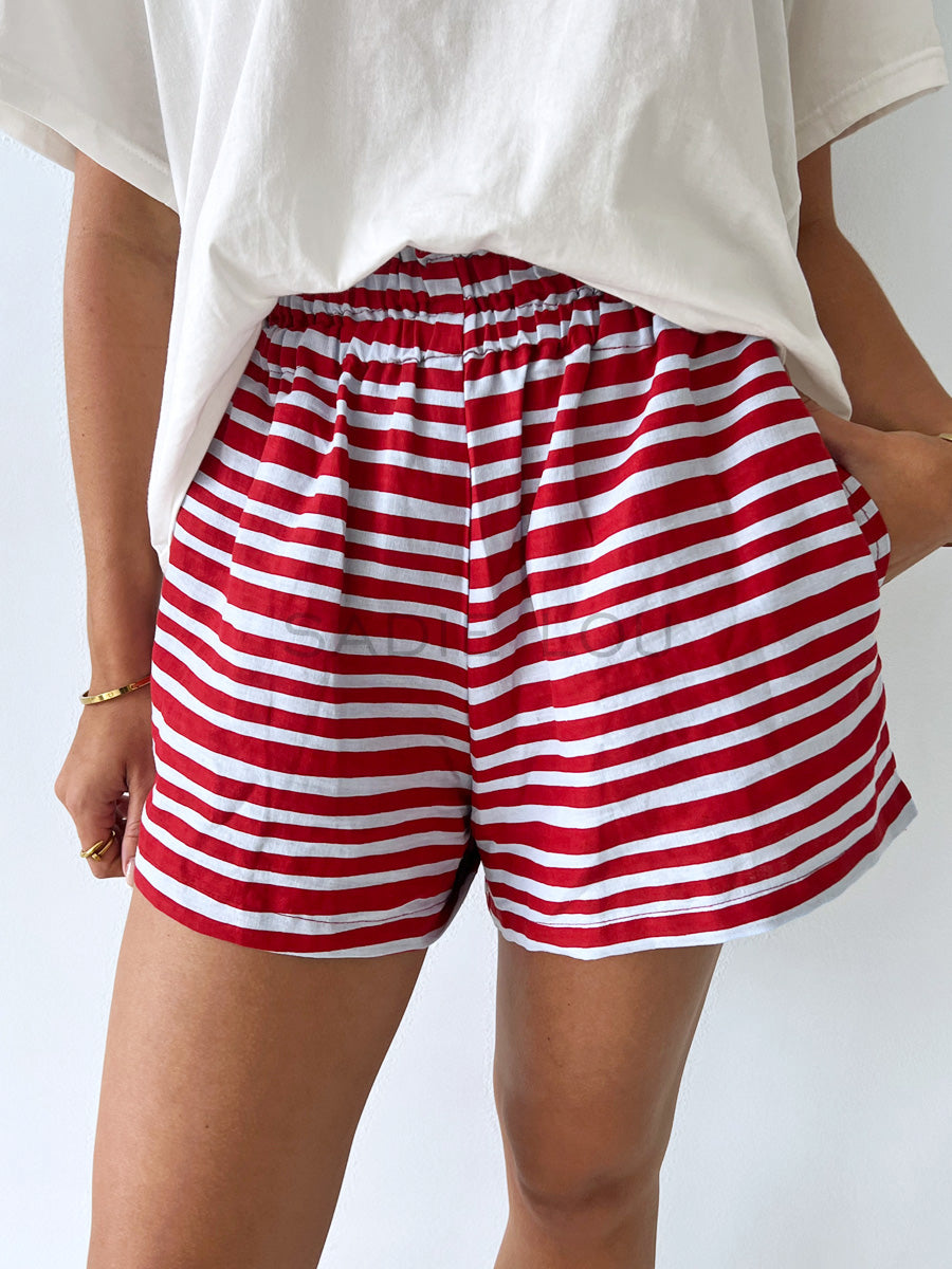 A häll original, The Etta Short in our exclusive hand-painted stripe print by SOAN Print House