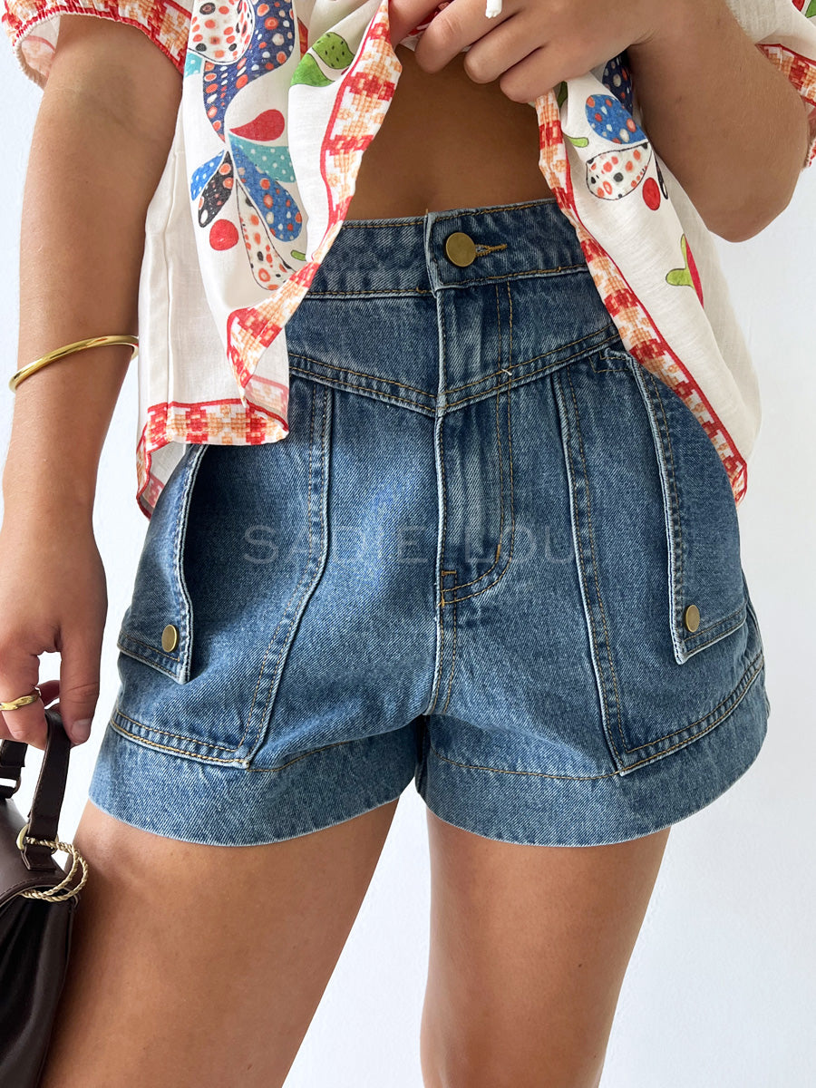 These classic dark denim shorts are a must-have for everyday styling. Designed with a flattering high-waisted fit, they feature two front pockets and two back pockets for a timeless, functional look. Made from sturdy yet comfortable cotton denim, they’re perfect for effortless wear season after season.