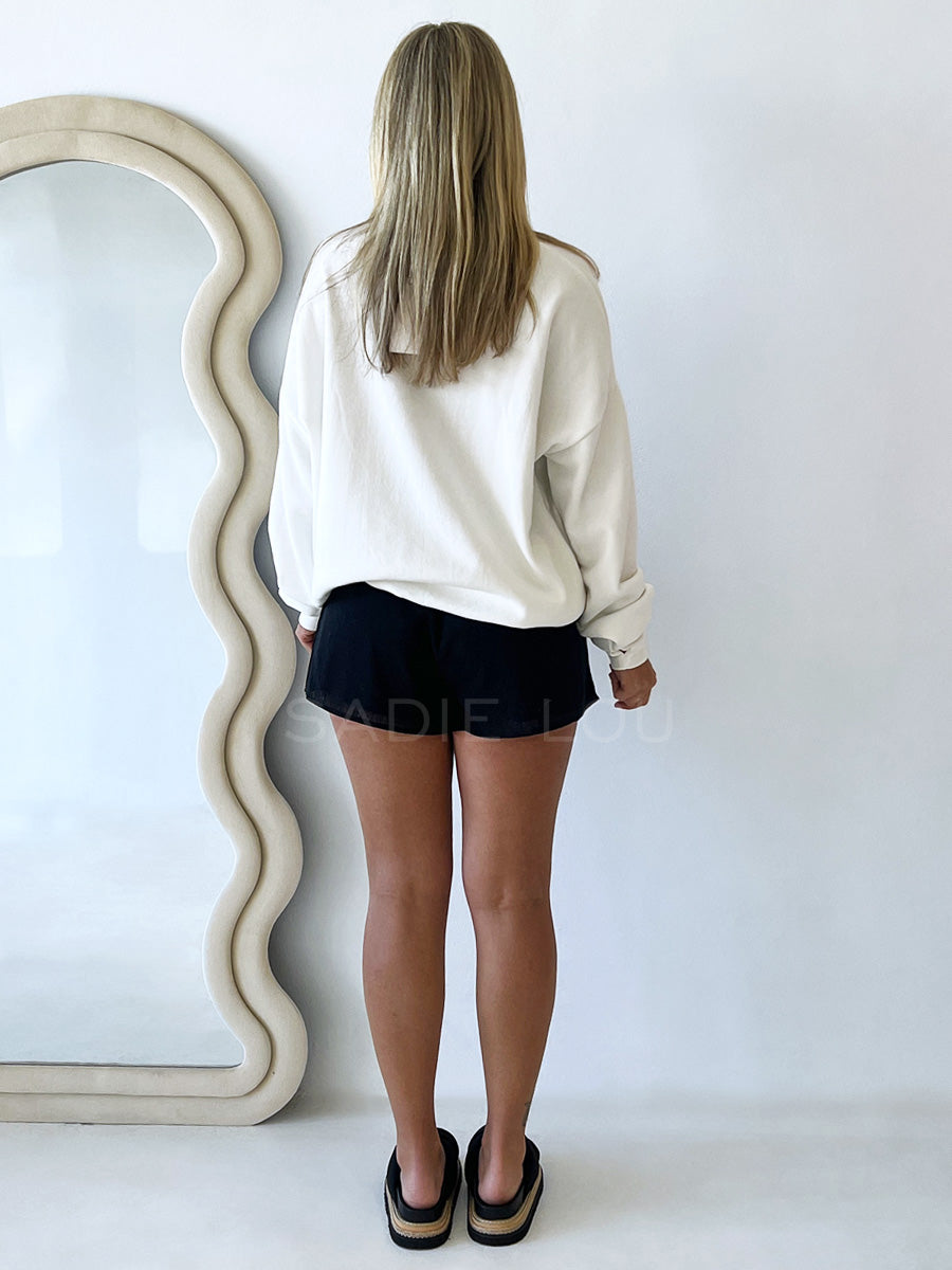 It is designed for an oversized, relaxed fit with dropped shoulders, providing a laid-back, contemporary silhouette. Crafted from a soft, lightweight fleece blend of 60% Cotton and 40% Polyester, it delivers the soft, durable, and lived-in feel characteristic of The Laundry Room's signature graphic sweatshirts. This piece is perfect for effortless, casual styling.