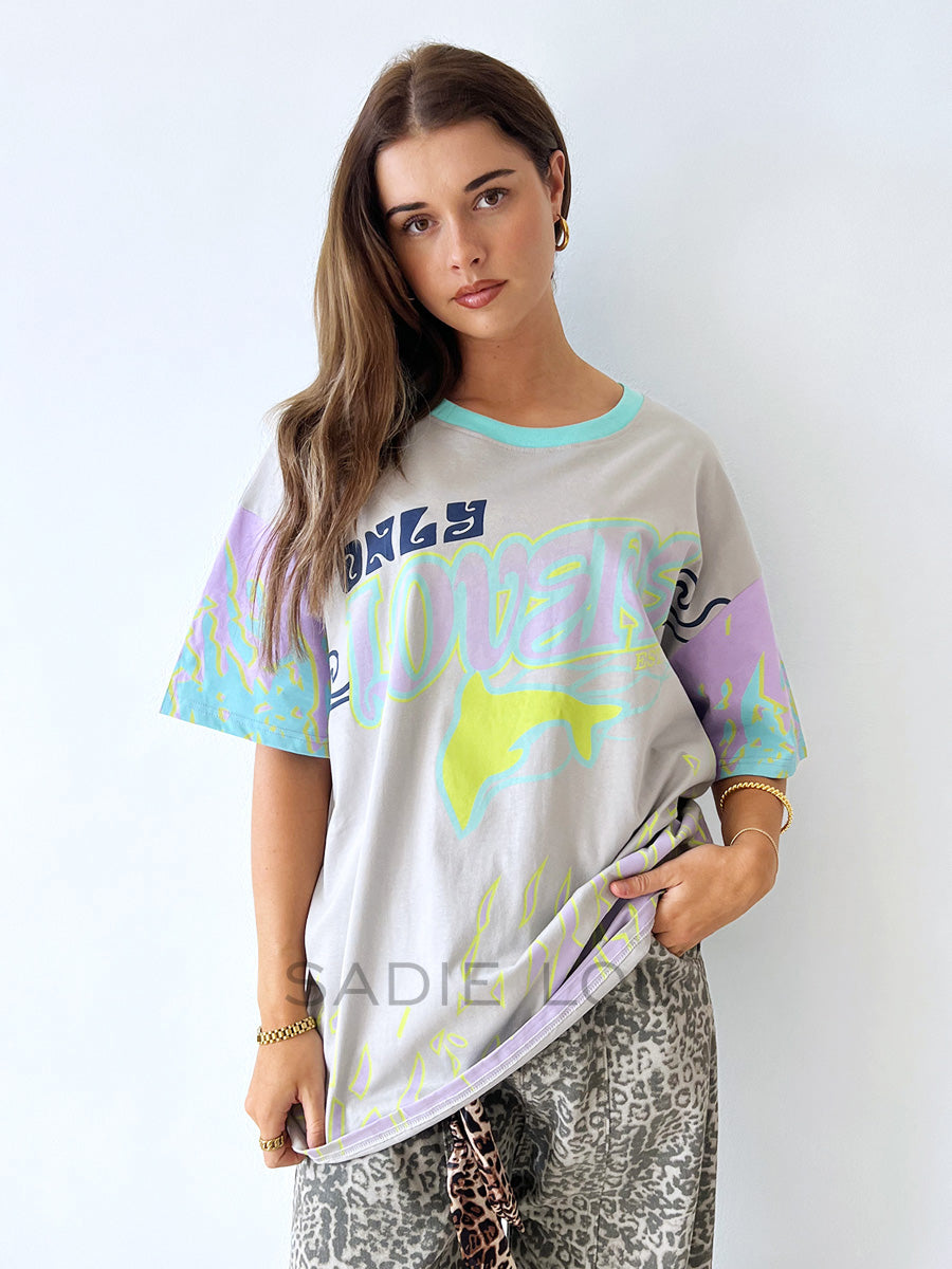 Born from salt water and sun glare, the Wave Racer Tee is cut in our signature oversized fit and made from soft 100% cotton, bringing sun-bleached colour hits and 90s nostalgia into an easy, throw-on piece with main character energy.